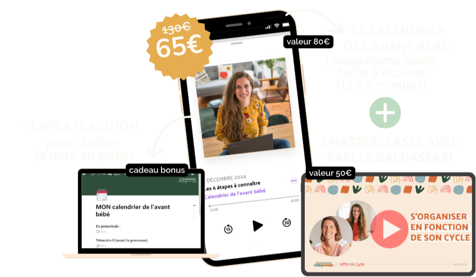 PROGRAMME "Calendrier de l'avant bébé" + MASTERCLASSE "S'organiser en fonction de son cycle" pour seulement 65€ (au lieu de 130€) jusqu'au 31 JANVIER 2026
